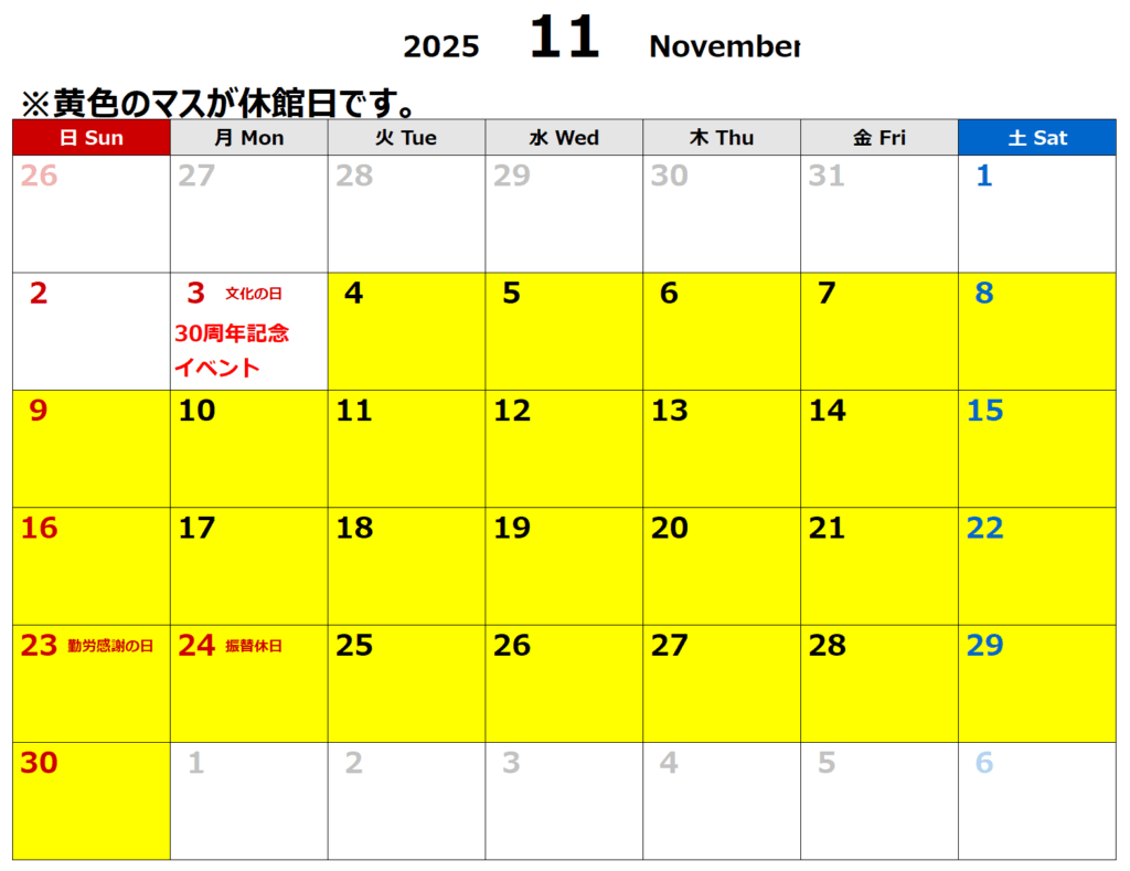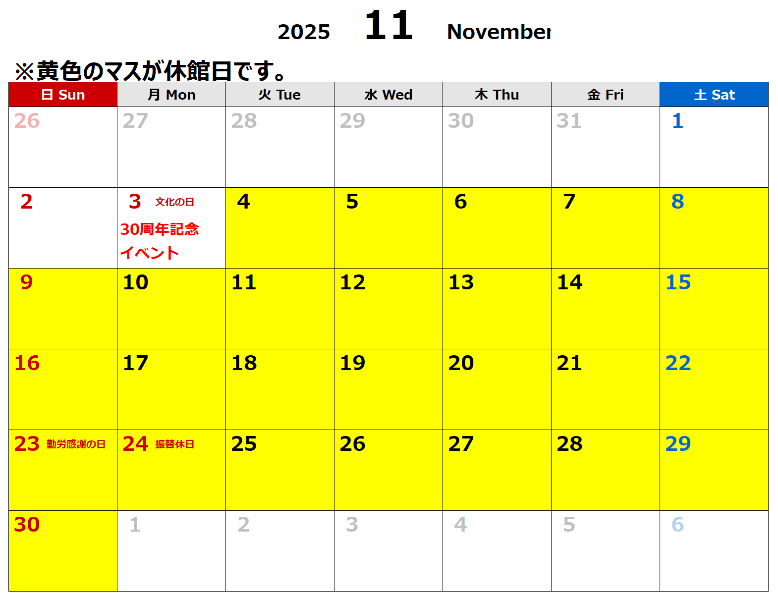 工事日程によって開館日が変更になりますので、決まり次第お知らせいたします。